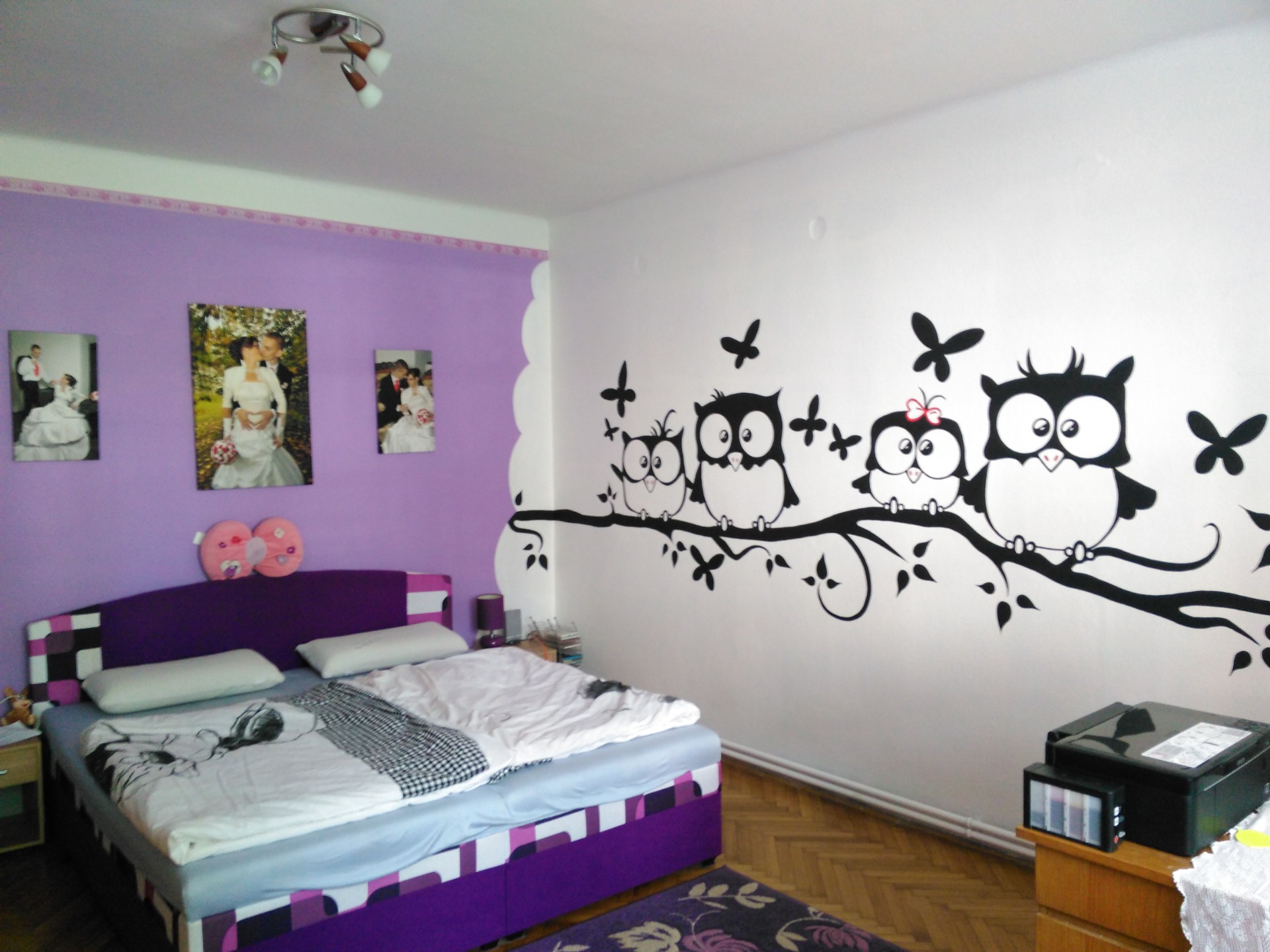 V spálni som namaľoval pre radosť obrázok štyroch sovičiek. Išlo o môj prvý obrázok maľovaný čiernou farbou. Aby obrázok dostal šmrnc, tak som pri maľovaní použil aj červenú farbu pre niektoré detaily.